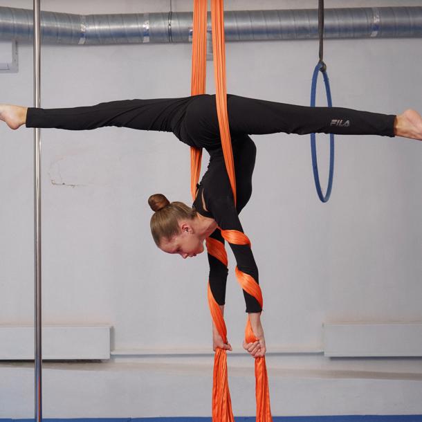 Новый официальный вид спорта в России. Включает в себя комплекс акробатических упражнений с элементами хореографии, исполняемый под музыкальную композицию на воздушных полотнах или воздушном кольце.